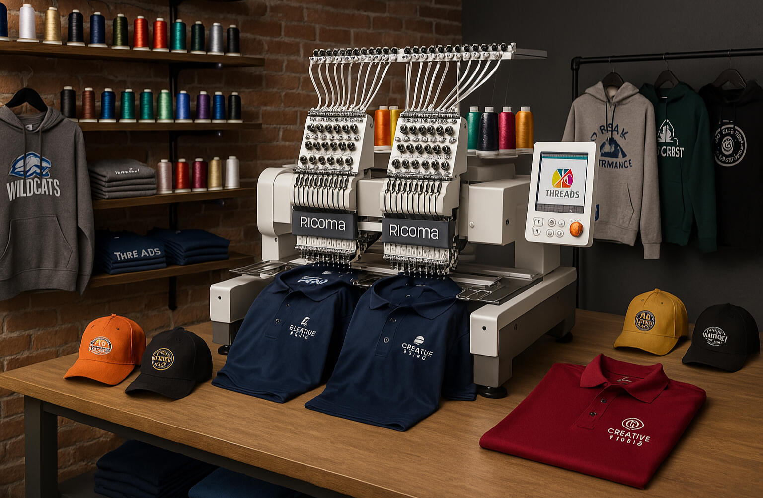 Embroidery is the process of stitching thread directly into fabric to create a design, logo, or text. It uses a specialized embroidery machine—like your Ricoma setup—to follow a digital design file (usually a DST or PES format), which tells the machine exactly where to place each stitch.Here’s how it works in a nutshell:Your design is digitized—converted into a stitch map.The garment is hooped and loaded onto the machine.The machine then uses needles and threads to stitch your design with high precision.Why embroidery is great:Professional and long-lasting – It won’t fade or peel like some prints.Adds texture and depth – The stitched look gives your gear a premium feel.Perfect for polos, caps, jackets, and workwear – Especially when you want that upscale, durable finish.It's the go-to when you want your brand to look sharp, elevated, and built to last.